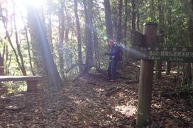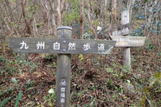 我々は左の九州自然歩道を進んで山頂へ。下りは右のホッテ谷新道から戻る予定。 |