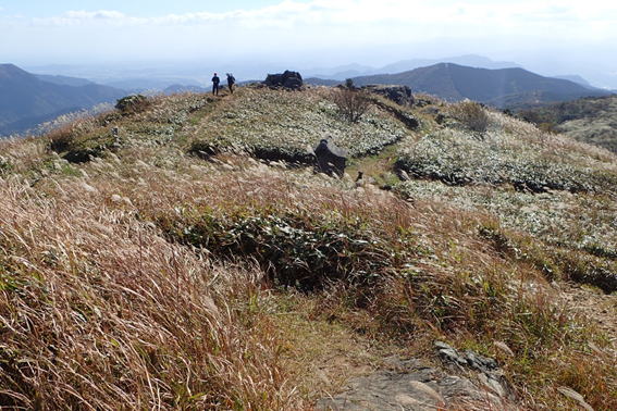 福智平から山頂を望む 10時10分 快晴! 山頂を歩く人が見える |