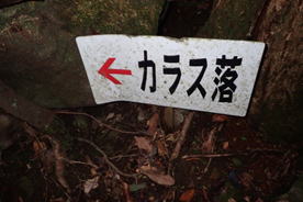 三叉路分岐 11時41分 我々は右へ下ってからす落へ。 左に進むと八丁の辻に通じる。 確認! |