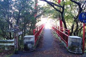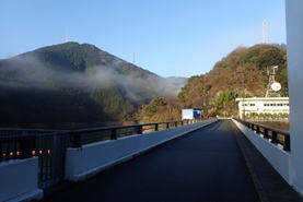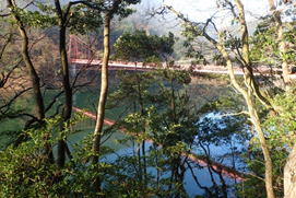 ![]() 赤い鱒渕橋が見えてきた 7時53分 |