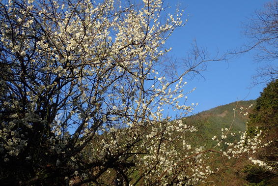 鱒渕ダム沿いの遊歩道では梅が満開。辺りは梅の香りで心地よい。