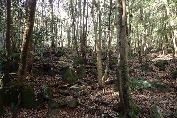 さて、登山道はどこだ? 広い林になっているので時々道が分からなくなる(落葉が原因) |