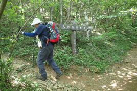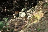 途中でタヌキに遭遇。登山道をトコトコ歩くタヌキは滑稽だった。 |
