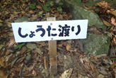 しょうた渡り 8時30分 Y本さんが軽快に渡渉。ほぼ毎週歩く慣れた道は、足を置く石も決まっているようだ。 誰の名前? |