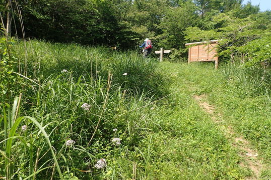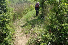 一旦森を抜けると、そこは鬱蒼(うっそう)と覆い茂る藪 8時38分 直射日光が暑い |