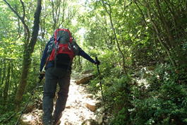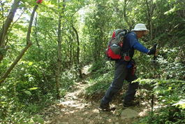 ![]() 登山道を踏み締め、黙々と上るH師匠 |