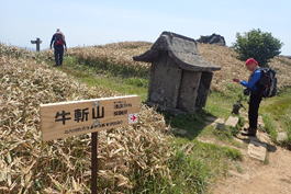 福智山山頂の気温は24℃。風も少し吹いて、とても過ごしやすい気候だった。 |
