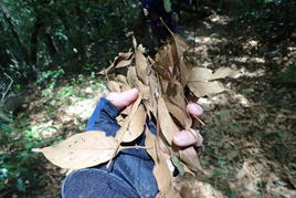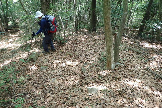 林の中は落ち葉が降り積もり、ルートが不鮮明。だが、Y本さんは勝手知ったる福智山。 9時11分 |