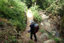 一旦沢へと下り、注意して渡る 9時08分 Y本さんはスイスイ、私はヨロヨロ情けない |