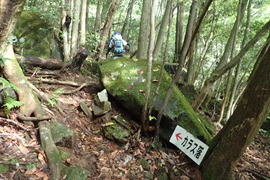 カラスのクチバシは登山道の真ん中にある岩の名前→これを踏むと安全登山のジンクスとか? |