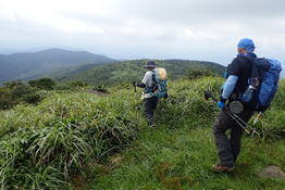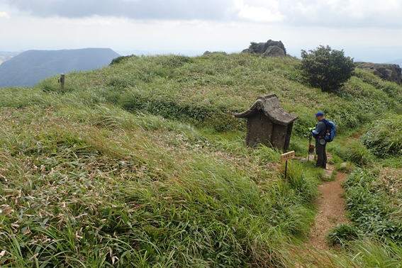 四畳半岩から山頂を望む 11時09分 緑濃いクマザサが広がる。これぞ夏の山頂風景!