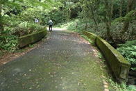 ます渕橋を渡って堰堤へ向かう 13時51分 橋を渡っていると、小雨がパラついた |