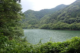 梅雨明けして夏本番! 鱒渕ダムも濃い緑に包まれている。