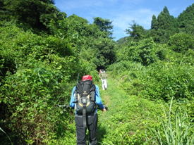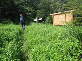 鈴ヶ岩屋への分岐を通過 11時47分 常連さんが草刈してくれた鈴ヶ岩屋への道(右)