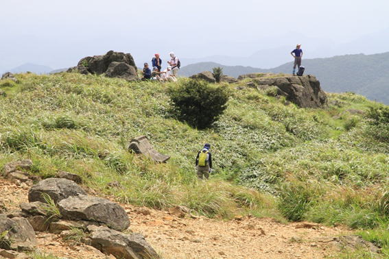 | 昼食後に山頂をブラブラと・・・ 11時25分 四畳半岩では常連さんたちがワイワイガヤガヤ |