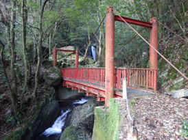 強羅橋 14時12分 水の音が大きくなったと思ったら、強羅橋にさしかかった。いつ見ても綺麗な渓谷だ。 橋の上から |