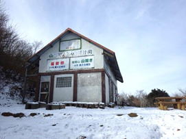 8、荒宿荘 11時21分 荒宿荘の中から人の笑い声がした。寒いので休憩をしているのだろう。 福智山避難小屋 |