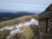 9、福智山山頂 11時52分 鱒渕ダムを出発して3時間48分だった。山頂碑周辺の登山者は5人程度だろうか?予想より少ない。山頂からもう一つの祠へ向かう。 視界良好 |