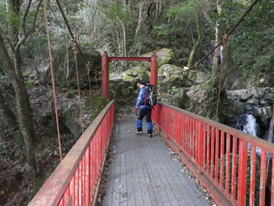 七重の滝入口橋 8時21分 昭和29年に架けられた「七重の滝入口橋」を渡る。ここからが本格的な登山道になる。 歴史を感じる |