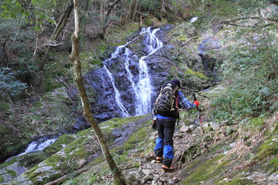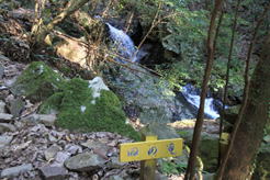 二の滝 8時48分 細く長い2段の滝だった。勢いよく流れ出る滝はまるで「荒れ狂う龍の如し」だ。 更に上へ |