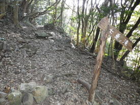 植林帯を進む 9時52分 大きく成長した杉の中を通り抜けると、風景は勾配が急なガレ場に一変した。忍耐の上りだ。 ガレ場 10時06分 |