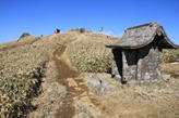 ポカポカの山頂風景 12時12分 登山者が続々山頂に上がってくる。グループ、ご夫婦、親子連れ、単独行などそれぞれ皆さんご満悦。 ところが赤牟田の辻方面からの一本道を突然バイクが3台爆音を轟かせて上ってきた。見ると、ぬかるみでスタックして立ち往生している。バイクはとうとう諦めて戻って行ったが、登山道はボロボロ。悲しい出来事だった。 |
