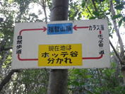 12、ホッテ谷分かれ 13時31分 山頂を目指す際、このホッテ谷分かれからどちらに進んでも福智山山頂に通じている。 安心する表示 |