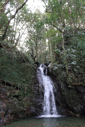 竜王峡<一の滝> 8時15分![]() 鳥居を潜り、右のバンガローから川に下りると落差 10メートル程の滝が現れる。辺りは滝の流れ落ちる音が響きわたる。これが竜王峡<一の滝>である。上流には二の滝、三の滝とあるが、私の歩く登山道から離れるのでパスした。ここは杉木立に囲まれた避暑地でバンガローが点在する。「竜王峡キャンプ村」として夏場は家族連れなどで賑わいをみせる。 |