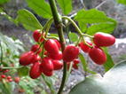 小さな沢を渡って進む 8時29分 のんびり歩いていた林道歩きもこの辺りで終了!ここからは本格的な登山道に入る。標識があるので安心して進むことが出来る。 真っ赤なアオキの実 |
