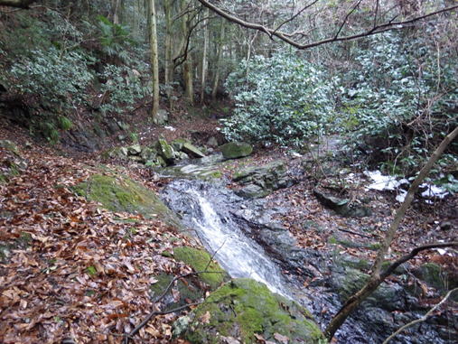 休憩 15時57分 小さな沢を何度か渡渉して下って行く