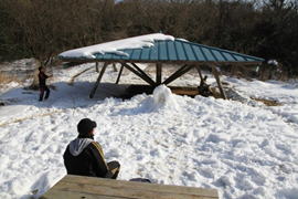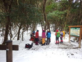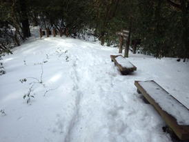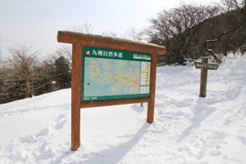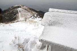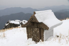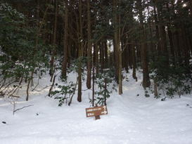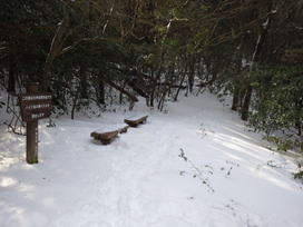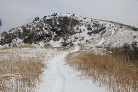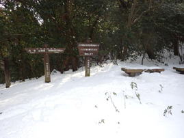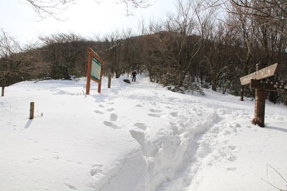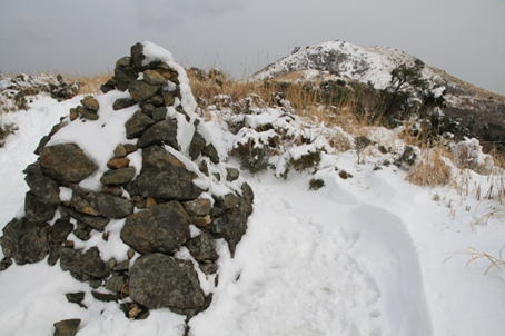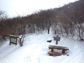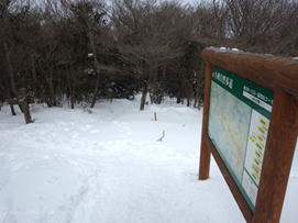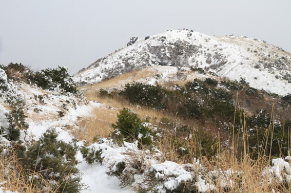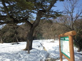 ![]() 平になった山頂には雪が積もっている。 春には水仙が咲いて、ハイキングをする人で賑わう。 |