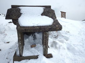 尺岳山頂 尺岳権現も雪に埋もれている