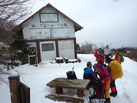 荒宿荘 11時30分 皆さん元気に雪山登山を楽しんでいるようだ!