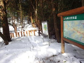 「九州自然歩道」の標識のあるT字路 |