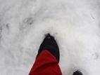 このような雪の中、アイゼンを装着するタイミングを考えながら歩いていたのだが、実は意外と歩き易かった。結局この時点ではまだアイゼンを付けていない。 |