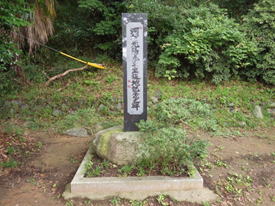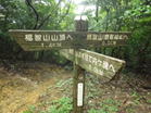 鳥野神社への分岐を通過 11時50分 登山道を上り、鷹取山山頂に程近い所に分岐がある。注意していないと見過ごしてしまうが、ここから内ヶ磯ダムの鳥野神社に続く。 目印の岩 |