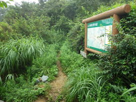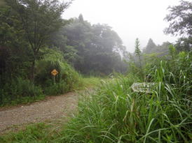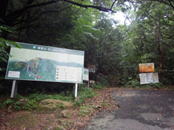 上野峡登山口から舗装道路を真っ直ぐ10分程下ると、今朝出発した綺麗なトイレのある場所に通じる。一本道なので迷うことはない。 |