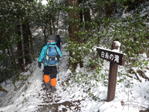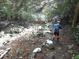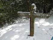 筑豊新道への分岐を通過 11時38分 この分岐から下ると5.1キロで内ヶ磯へ出る。筑豊新道は急登で険しい道なので下りには利用しない方がいいとのことだった。 筑豊新道は要注意 |
