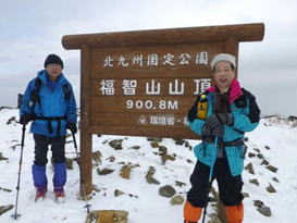 5、福智山山頂 10時38分 901m 山頂碑にタッチしてやっと登頂! 白糸の滝から2時間18分かかっていた。 マイナス3℃