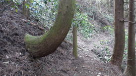 登山道に貼り出す木 8時13分 |