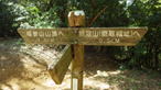 登山口からしばらく薄暗い竹林帯を歩いて上る。登山道には山藤の花びらが点々と落ちている。右下から沢の流れる音が聞こえてなかなかいい感じだ。 |