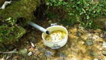 水場から登山道へ水が流れる 10時41分 |