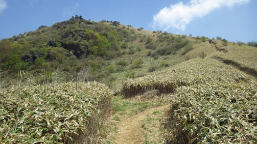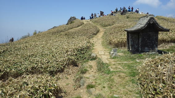 | 山頂を下り四畳半岩へ向かう 10時59分 これから茶色のクマザサが徐々に青くなるだろう |