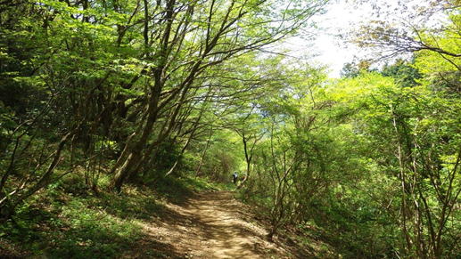 新緑の登山道 12時38分 花散策をしながら、ちょっと名残惜しく下って行く