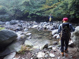 汐井川を渡渉する 13時28分 |
