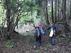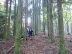 13、黒岩山への分岐 13時04分 植林帯の中を赤テープを探しながら歩いて行く。次回は黒岩山へ行ってみよう! 快調、快調 |