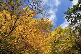 青い空に黄葉が映える