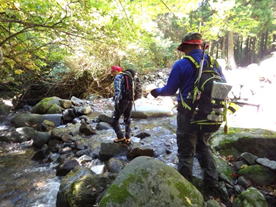 川を渡渉する 8時22分 |