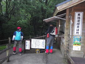 この後、車に乗って男池駐車場を出発すると、なんと凄まじい土砂降りになった。我々は間一髪セーフ。 |
