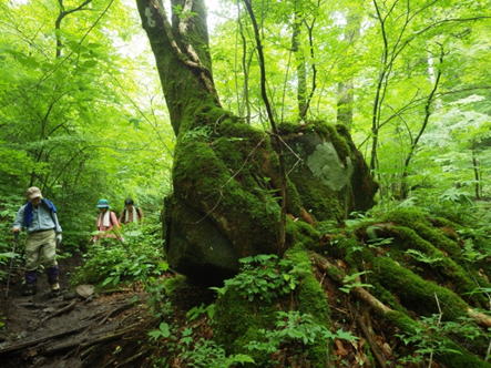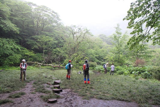 4、ソババッケ 6時00分 登山口から約1時間。森を抜けると広い場所。思わす深呼吸! |